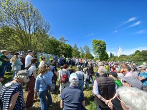 An der Wattenheimer Brücke sind am Wochenende mehrere hundert Menschen zusammengekommen, um ein Zeichen für den Erhalt der Altneckarschlingen und des Regionalen Grünzugs zwischen Bensheim und Lorsch zu setzen. Anlass war die Diskussion um ein geplantes interkommunales Gewerbegebiet im Bereich westlich des Gewerbegebiets Stubenwald II.