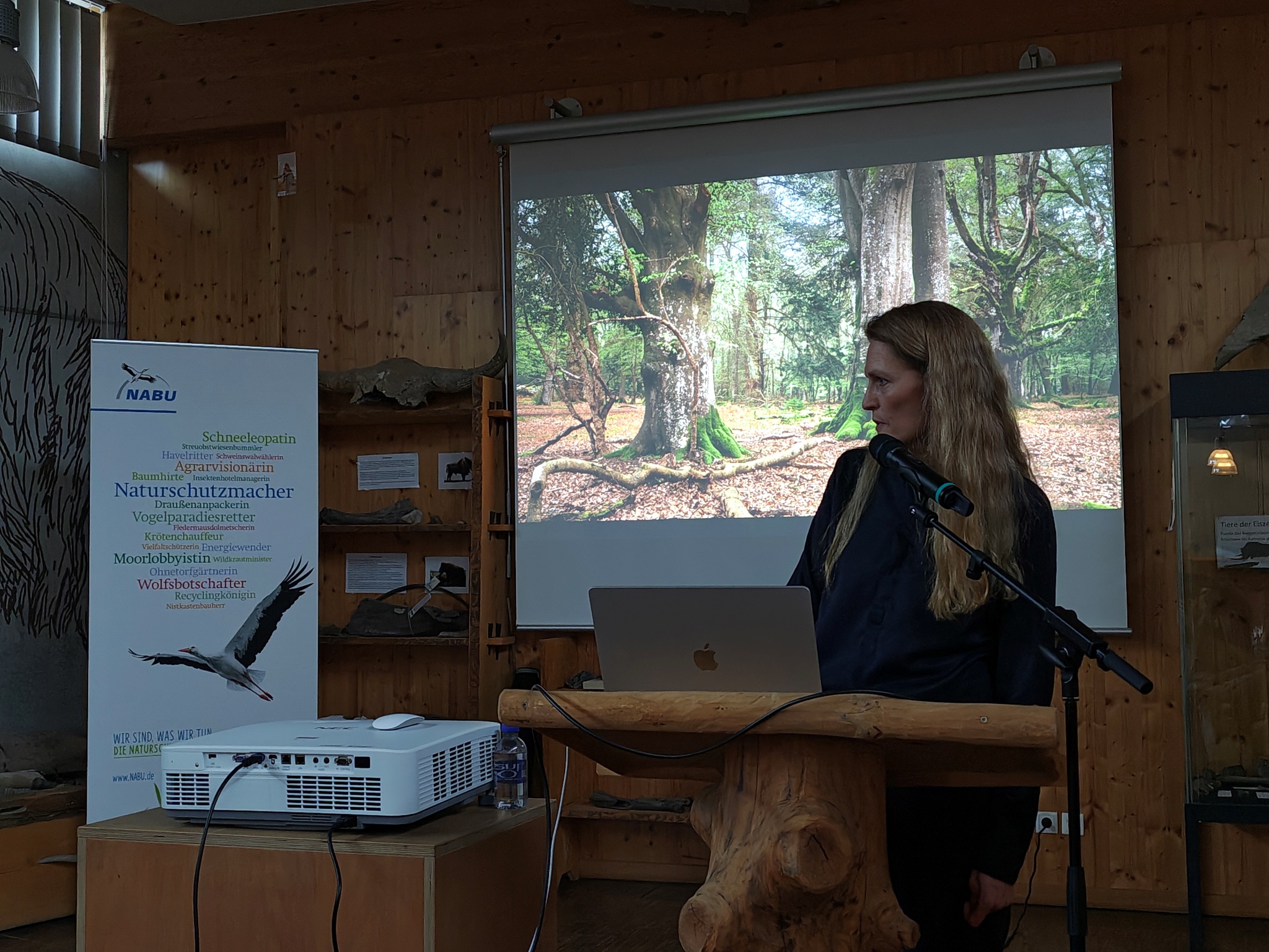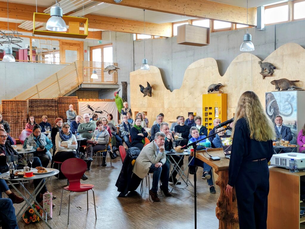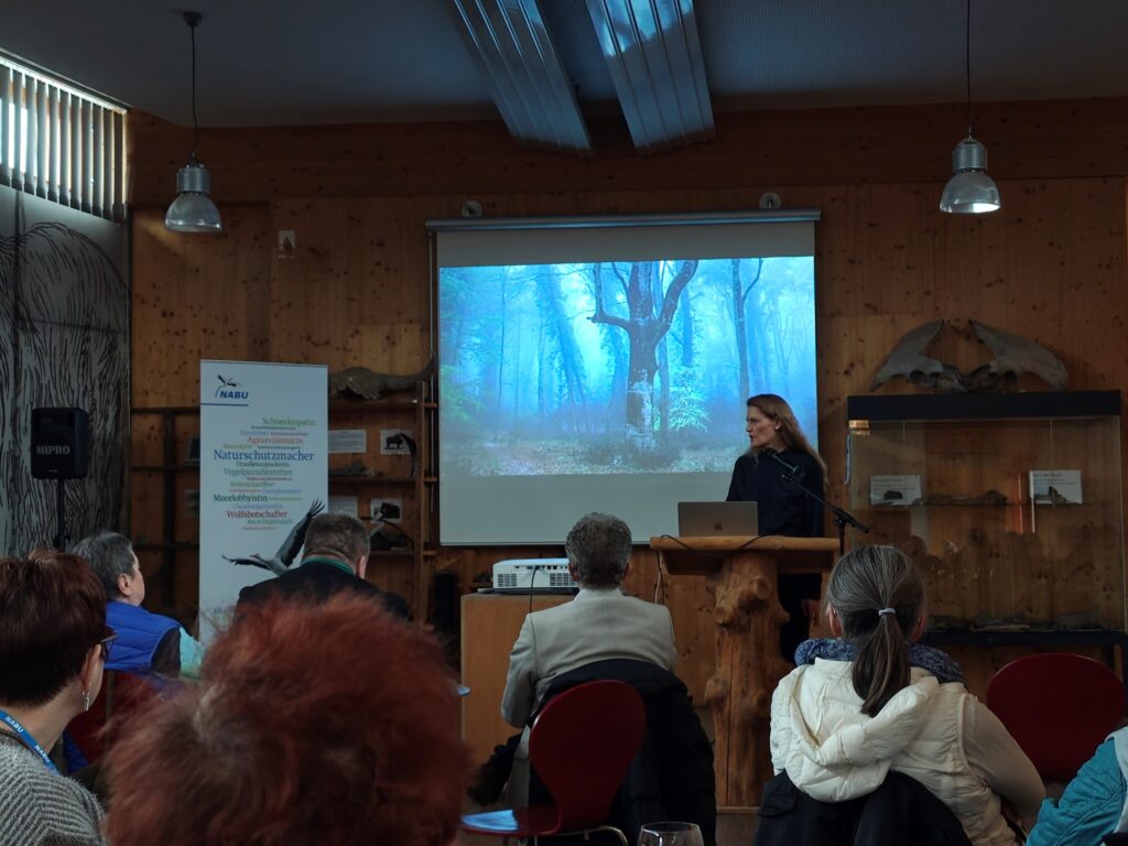 Den inhaltlichen Höhepunkt bildete der Vortrag der Natur- und Landschaftsfotografin Yvonne Albe. Sie nahm die Besucherinnen und Besucher mit auf eine Bilderreise durch die schönsten Buchenwälder Europas – von Deutschland über Spanien, Frankreich, Belgien, England und die Niederlande bis nach Slowenien und darüber hinaus. In atmosphärischen Aufnahmen zeigte sie lichte, blütenreiche, farbenfrohe, mitunter verwunschene Wälder – und schuf damit jene seltene Verbindung aus ästhetischer Nähe und fachlicher Einordnung, die Naturschutzkommunikation stark macht: Man sieht nicht nur Schönheit, man versteht auch, warum sie bedroht ist.