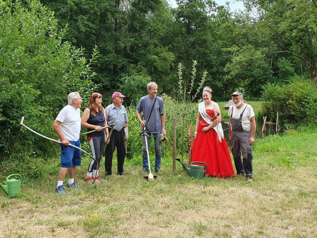 Entbuschung und Rückschnitt von Brombeeren und Unkräutern um den Teich, Anpflanzung von Steuobstbäumen Äpfel und Birnen. Aktion mit der Apfelkönigin Miriam, die eine Baumpatenschaft übernommen hat. Aktionstag Teichanlage, Arbeitseinsatz mit anschließendem Beisammensein. Geplant ist eine Wanderung mit Führung im September, bei Nachfrage auch im Oktober.