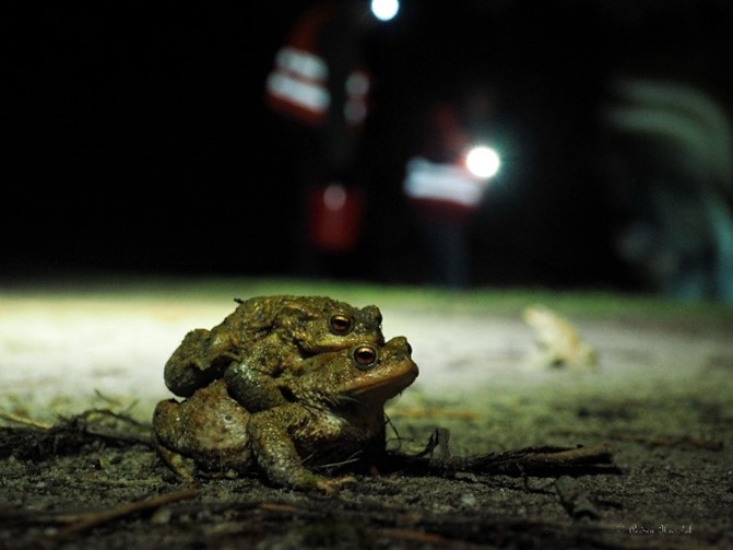 Bei ihrer Wanderung zum Gewässer müssen sie leider häufig Straßen überqueren, die wir Menschen gebaut haben. Da sie langsam unterwegs sind und nach der Wintersaison geschwächt sind und dann teils auch noch im Doppelpack unterwegs sind – wir ihnen das oft zum Verhängnis. So kommen bei der Überquerung der Straßen und Wege unzählige Amphibien zu Tode.