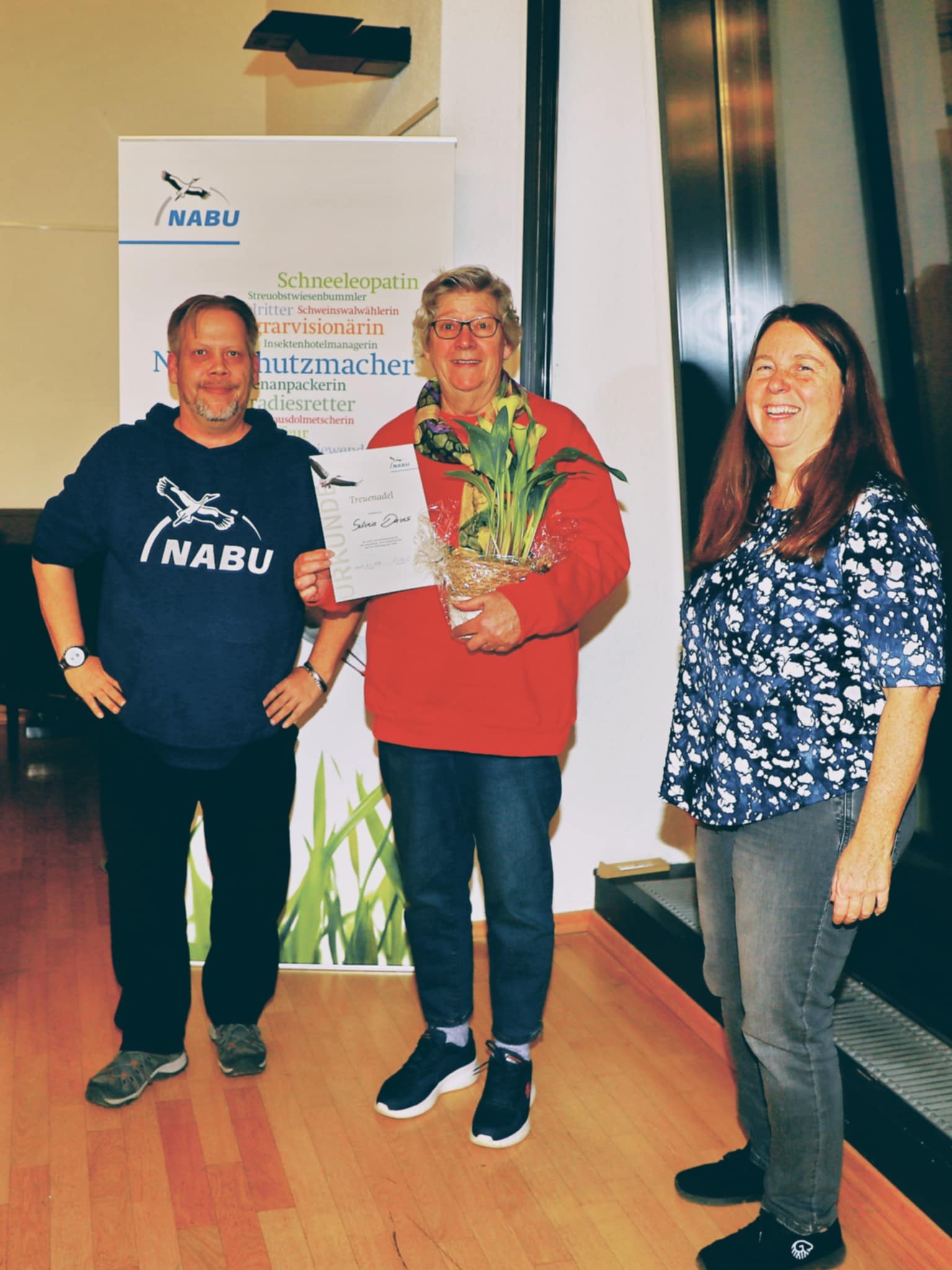 Ein wichtiger Punkt der diesjährigen Kreisvertreterversammlung war die bewusste Würdigung langjähriger Mitgliedschaften. Mit der persönlichen Ehrung von Silvia Davis für zehn Jahre NABU-Zugehörigkeit wurde erstmals ein Akzent gesetzt, das Engagement von Mitgliedern sichtbar und ausdrücklich zu würdigen. Darüber hinaus wurde Jürgen Schneider vom NABU Meerbachtal für seine 50-jährige Mitgliedschaft beglückwünscht, dessen Ehrung bereits zuvor in seiner NABU-Gruppe Meerbachtal stattgefunden hatte. Die Anerkennung machte deutlich, wie sehr der Verband vom langfristigen Engagement seiner Mitglieder getragen wird. Der Kreisverband möchte diesem Aspekt künftig bewusst mehr Raum geben.
