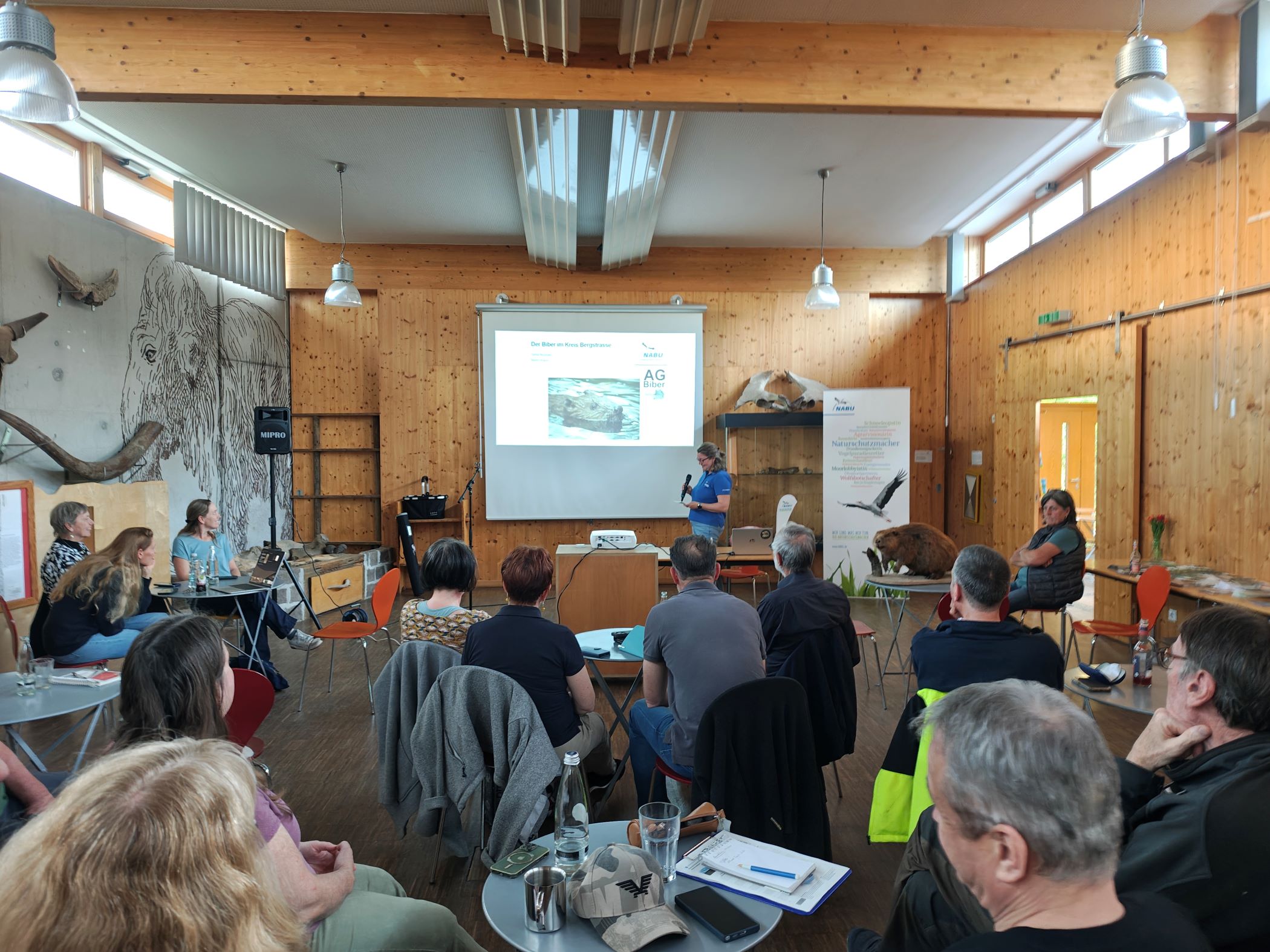 Auch das Thema Biber, vorgestellt von Sylvia Neumann, Biberbeauftragte des NABU Kreisverbands Bergstraße, sorgte für intensive Aufmerksamkeit. Der Vortrag spannte den Bogen von der historischen Ausrottung des Bibers in Hessen bis zu seiner erfolgreichen Rückkehr und Ausbreitung in den letzten Jahrzehnten. Gleichzeitig wurde deutlich, welche ökologische Bedeutung der Biber als „Landschaftsgestalter“ hat: Durch seine Bautätigkeit entstehen neue Lebensräume, die die Artenvielfalt deutlich erhöhen können.