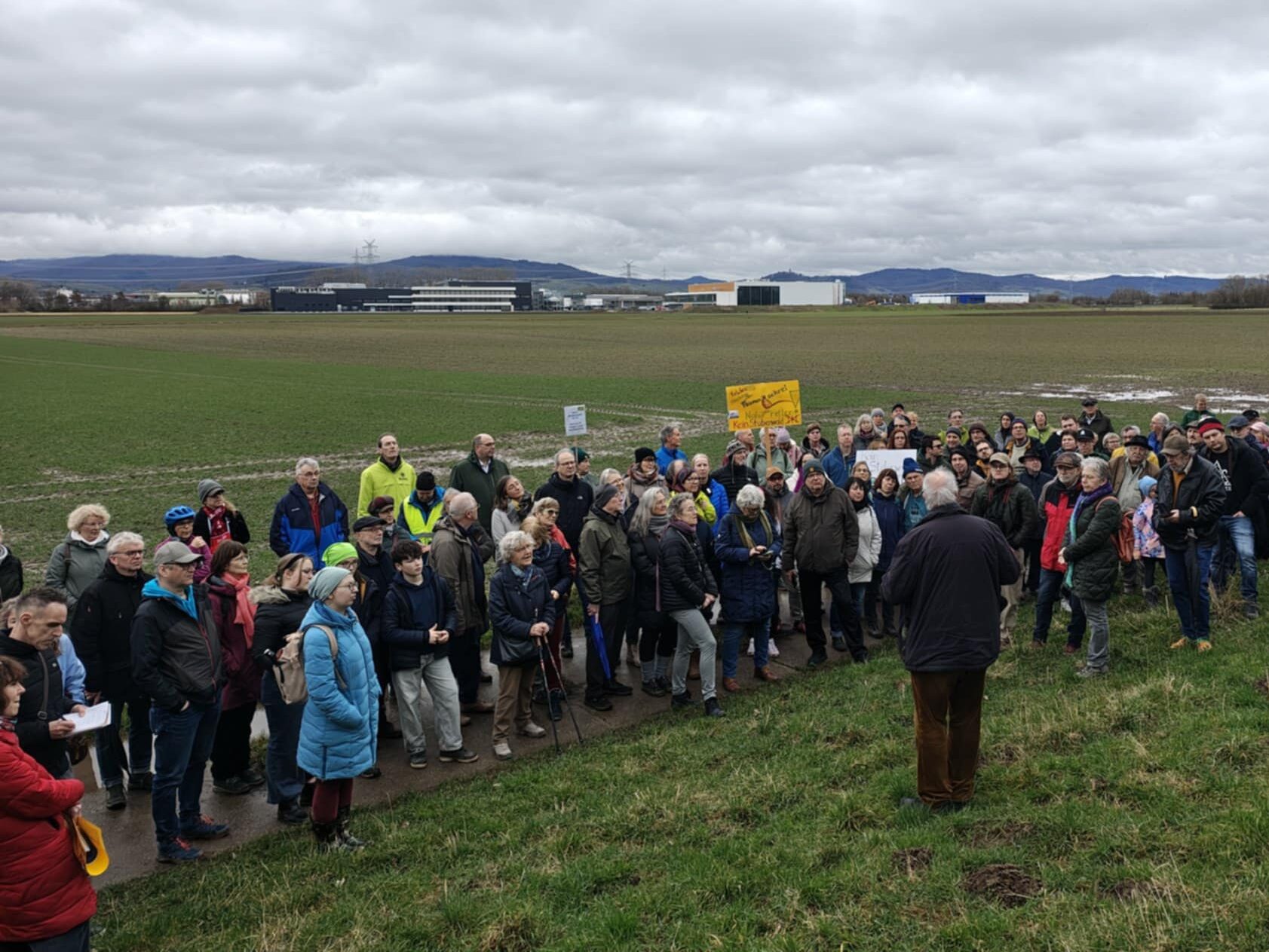 Mehr als 100 Bürgerinnen und Bürger haben am Sonntag am Aktionsrundgang von NABU Bensheim/Zwingenberg und BUND Bensheim/Zwingenberg im Bereich der geplanten Gewerbegebietserweiterung westlich des bestehenden Stubenwald II teilgenommen. Anlass ist die Planung der Städte Bensheim und Lorsch, eine rund 23 Hektar große Fläche zusätzlich zu den Vorgaben der gültigen Regionalplanung zu entwickeln. Für die Umsetzung ist eine Zielabweichung vom geltenden Regionalplan vorgesehen.