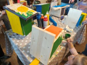 Mit viel Neugier, Farbe und handwerklichem Geschick wurde es am Sonntag im Naturschutzzentrum Bergstraße lebendig: Bei der Vogelwerkstatt des NABU Kreisverbands Bergstraße bauten Kinder gemeinsam